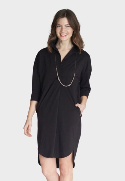 Introducing a reimagined classic from Buki, this dress is a true technical masterpiece designed to elevate your wardrobe. With a flattering silhouette and a clean design featuring a stylish V-neck placket collar and three-quarter sleeves, this piece balances fashion and function perfectly. The practicality is further enhanced by two front pockets.