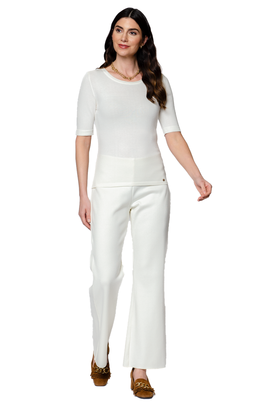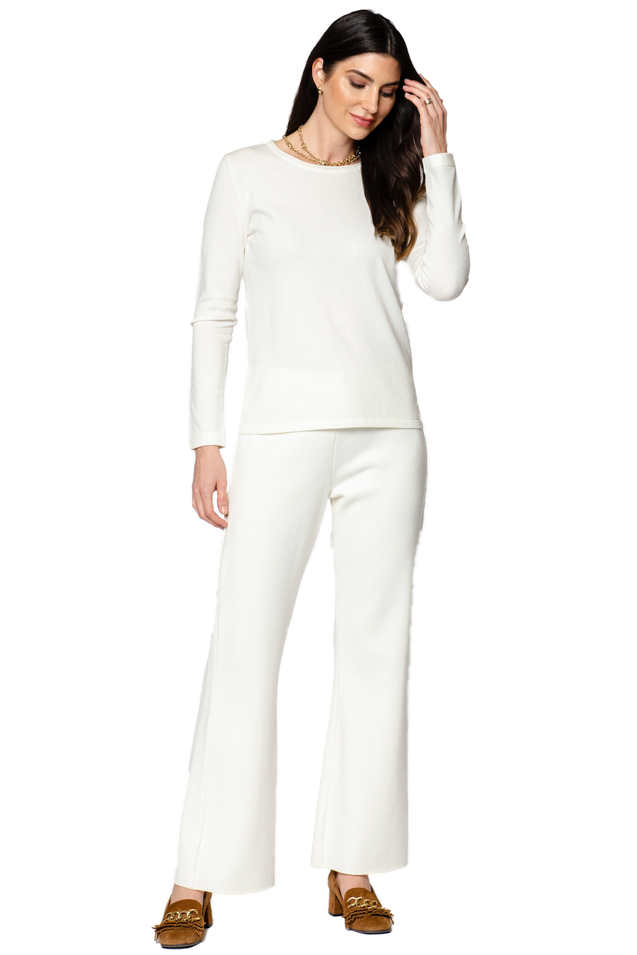 Monique Milano-Knit Boot Leg Pants; Winter White