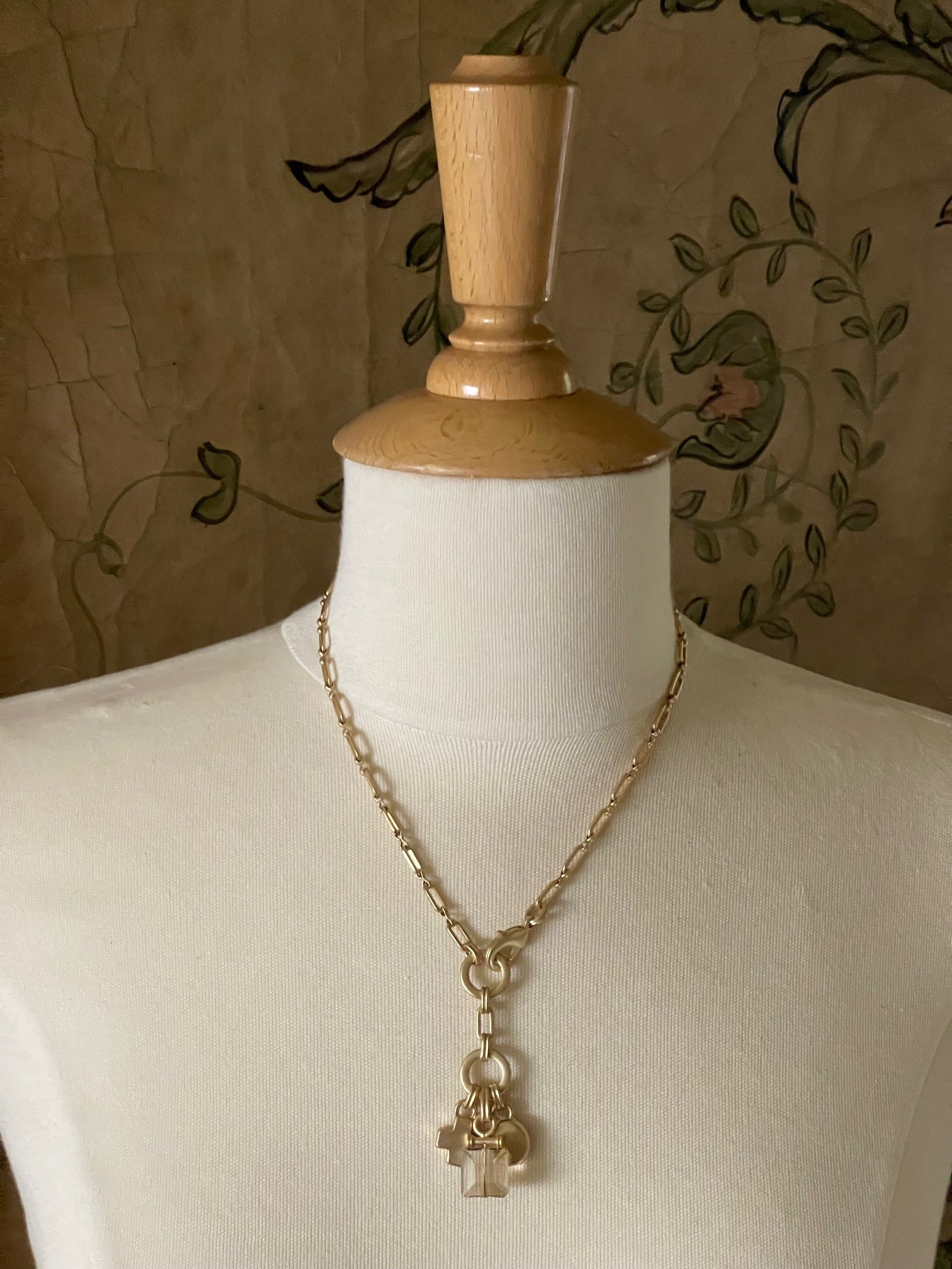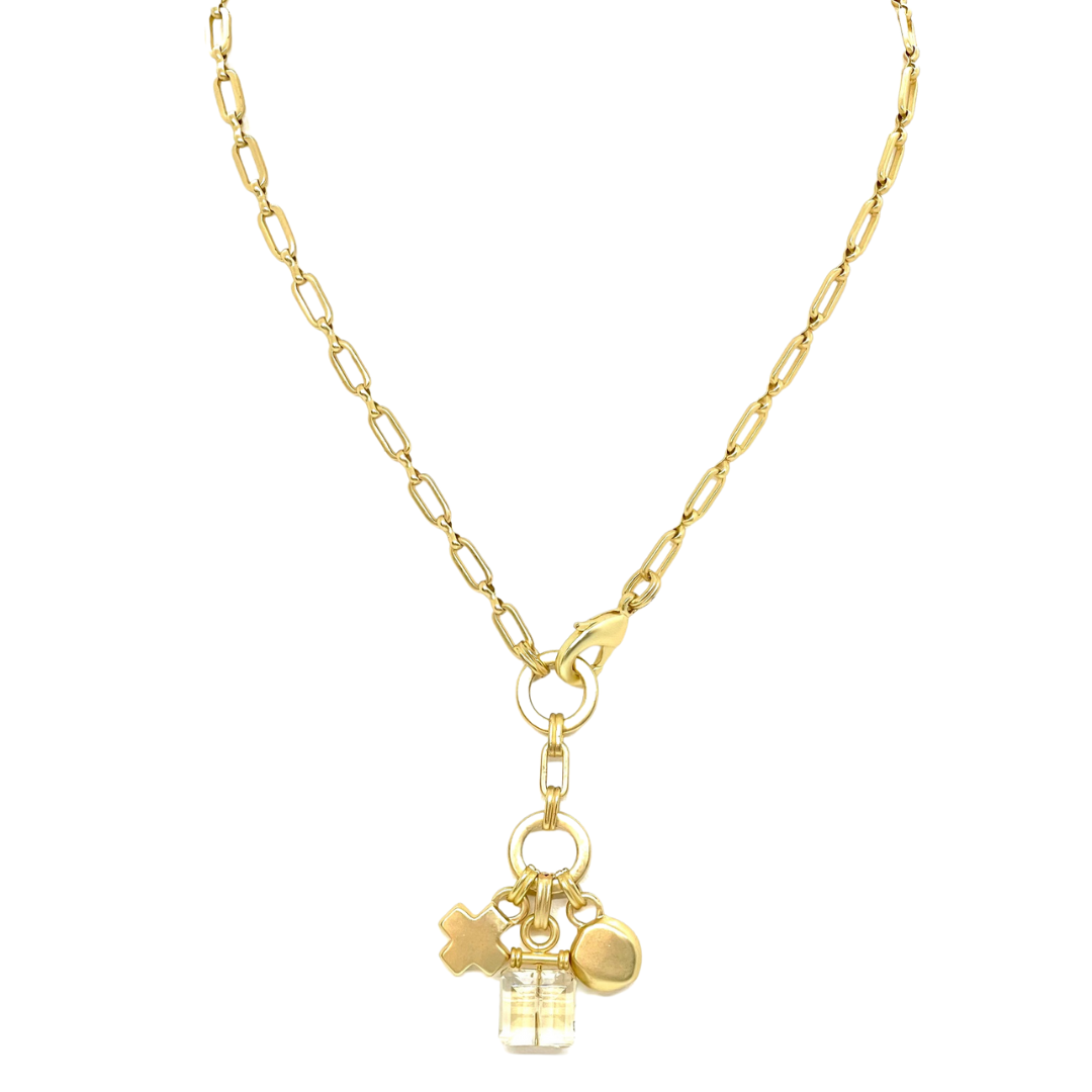 Matte Gold Paperclip Chain Square Champagne Crystal Cluster Charm Necklace